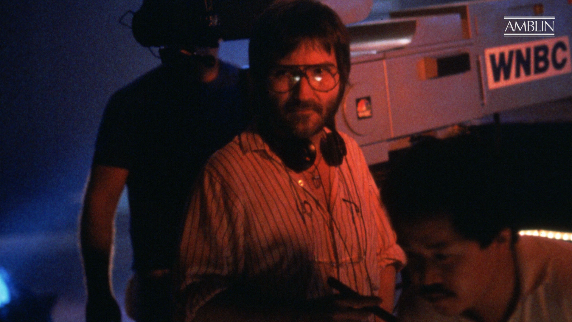 Legendary filmmaker Martin Scorsese, also a personal friend of "Amazing Stories" creator Steven Spielberg, sets up a shot in the cramped quarters of a bathroom set filled with mirrors in his episode "Mirror, Mirror."